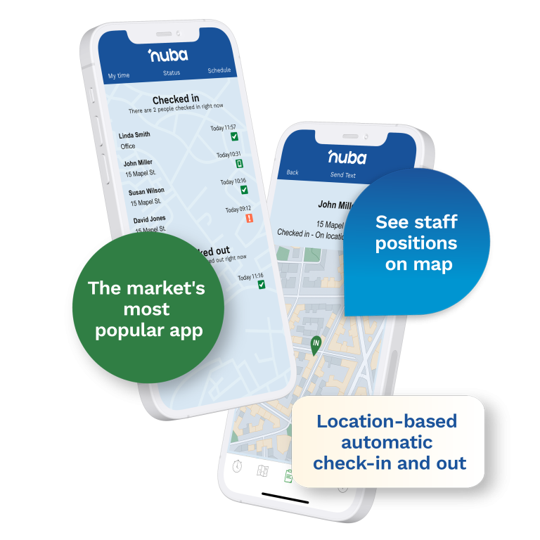 Nuba is more than just an app for automatic time reporting. For example, it includes scheduling, staff ledger, time bank, and much more.